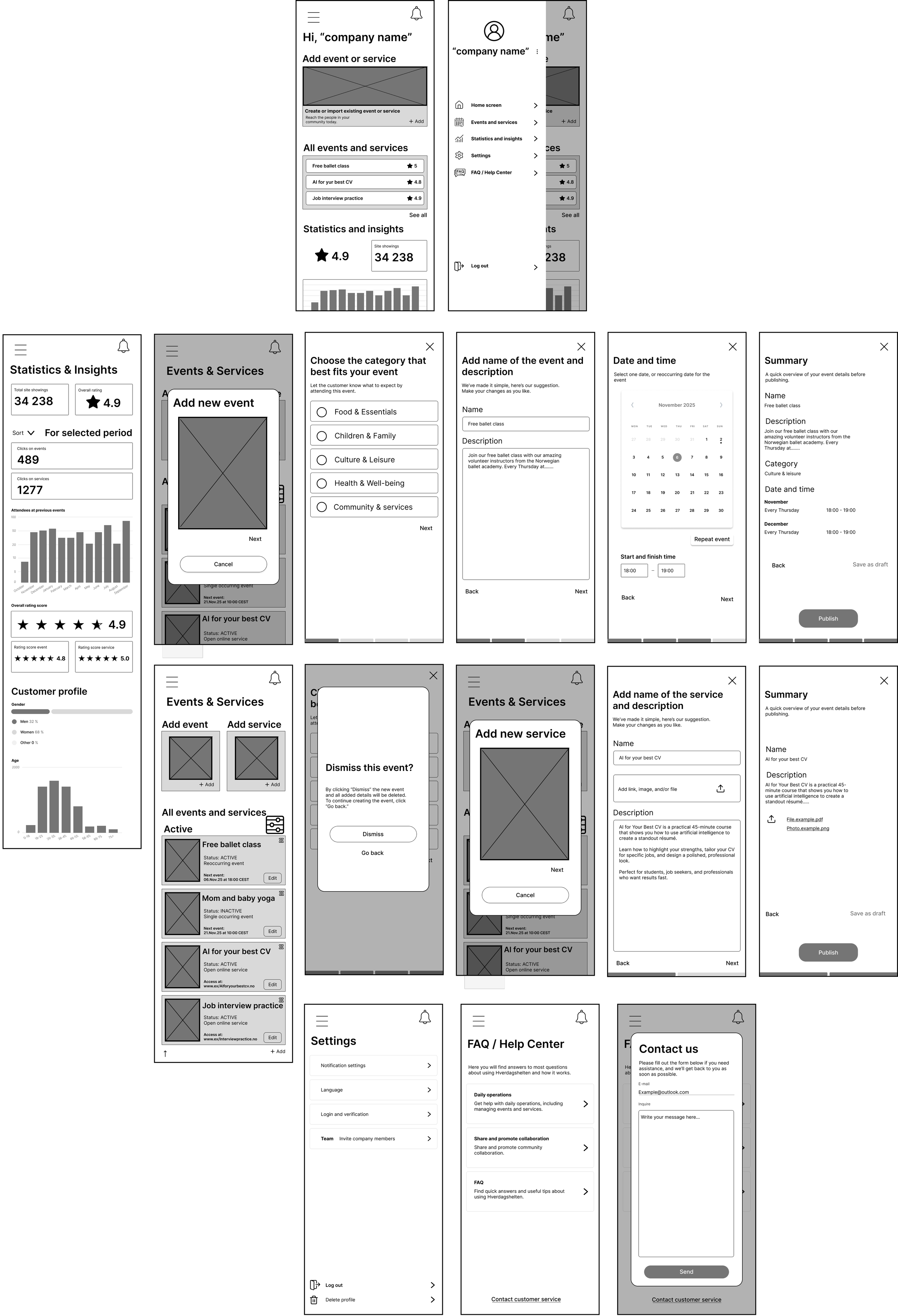 In addition to the early sketches, I assembled the complete set of high-fidelity wireframes, ensuring visual consistency, coherent layouts, and alignment with the chosen color palette, icons, and design patterns. This work helped establish a clear foundation for the final prototype and the overall user experience.User testing: