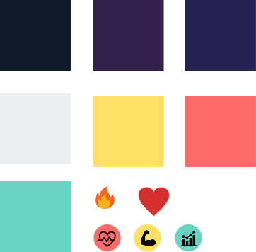 I selected the colors used throughout the MoveIt app on both the smartwatch and mobile designs. The palette was chosen to support visibility, contrast, and motivational energy while maintaining a clean and minimal aesthetic. Ensuring that the colours worked consistently across two device types was a key priority in the design process.Icons: